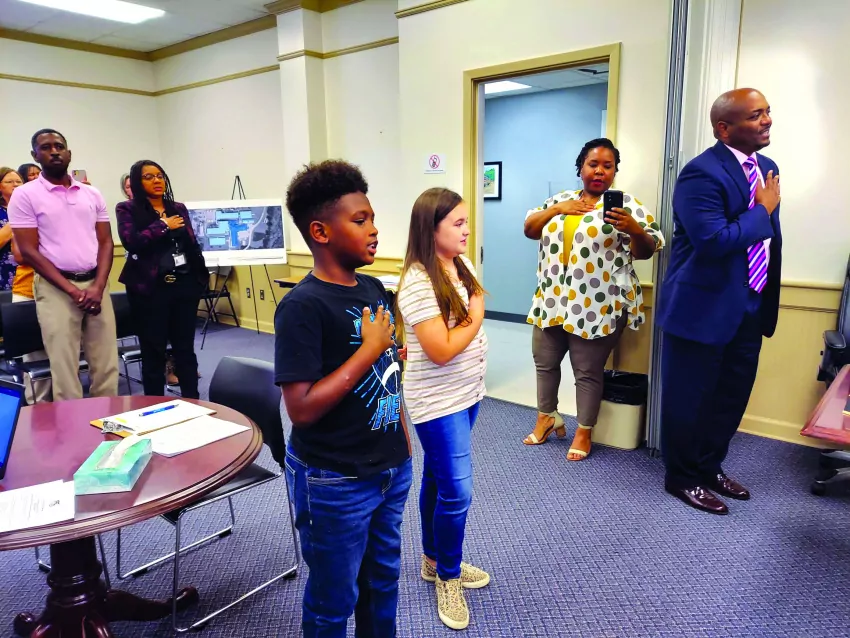 The board meeting opened with students from Magee Elementary leading the Pledge of Allegance to the Flag.