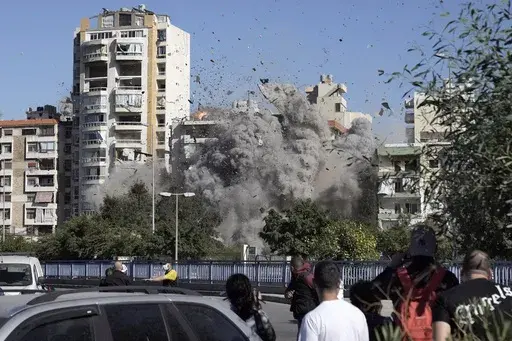 BEIRUT (AP) — Taking cover behind a large tree, an Associated Press photographer pointed his camera toward a Beirut apartment building the Israeli military warned was in its sights.