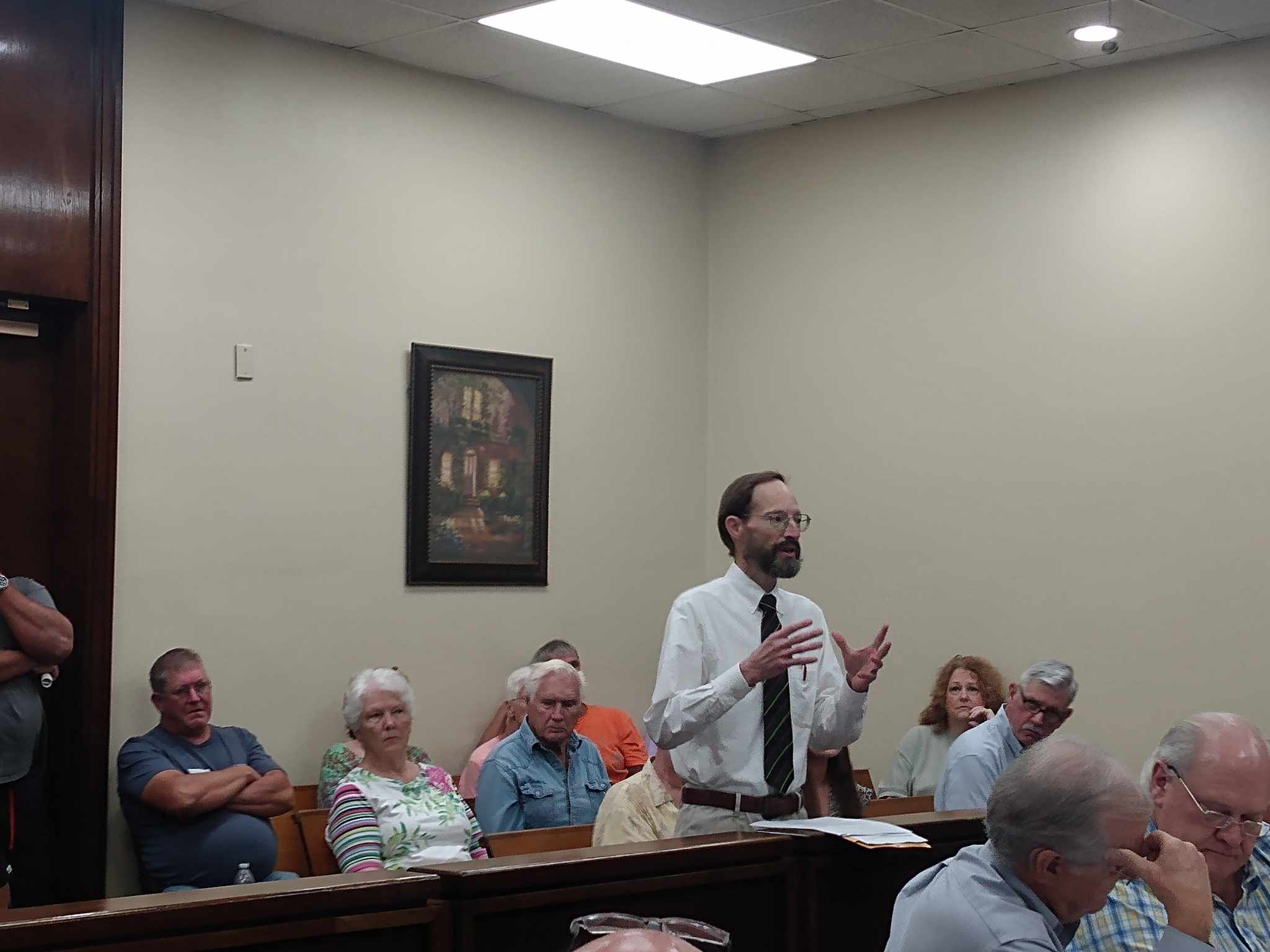 Paul Barry and Lee McCoy spoke before the board entered executive session. Barry said the mismanagement of money by the school board. Barry said the hundreds of thousands of dollars being spent on consolidation was a waste and could be spent to fix the roads and support law enforcement.