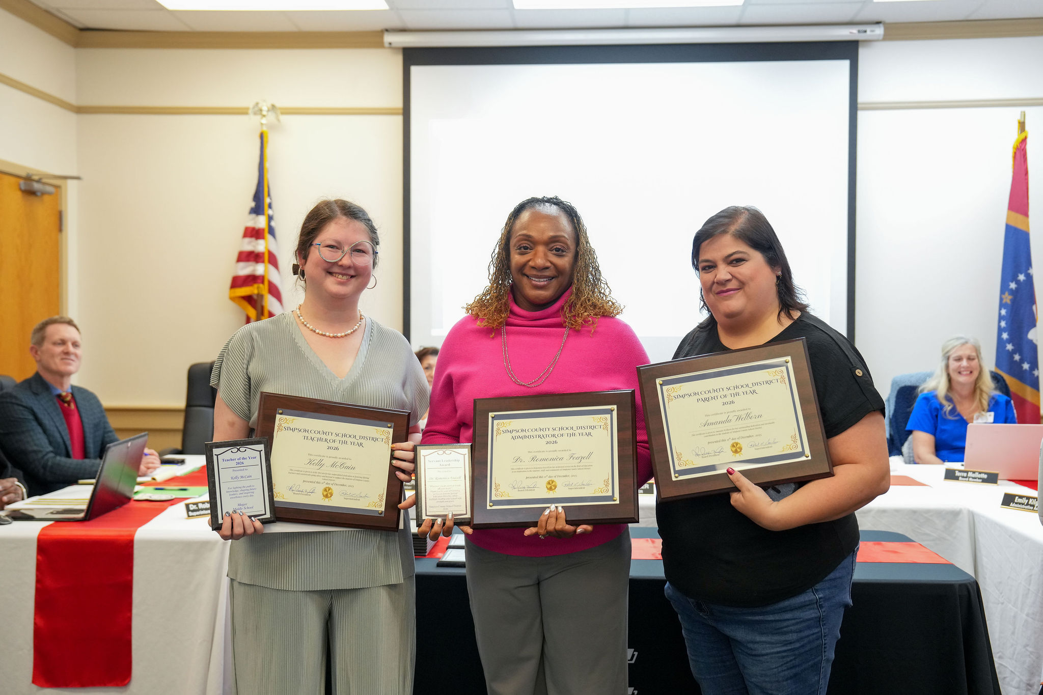 The Simpson County School District Board of Education held its regular monthly meeting on December 11, beginning with recognitions of outstanding parents, teachers and administrators from across the district.