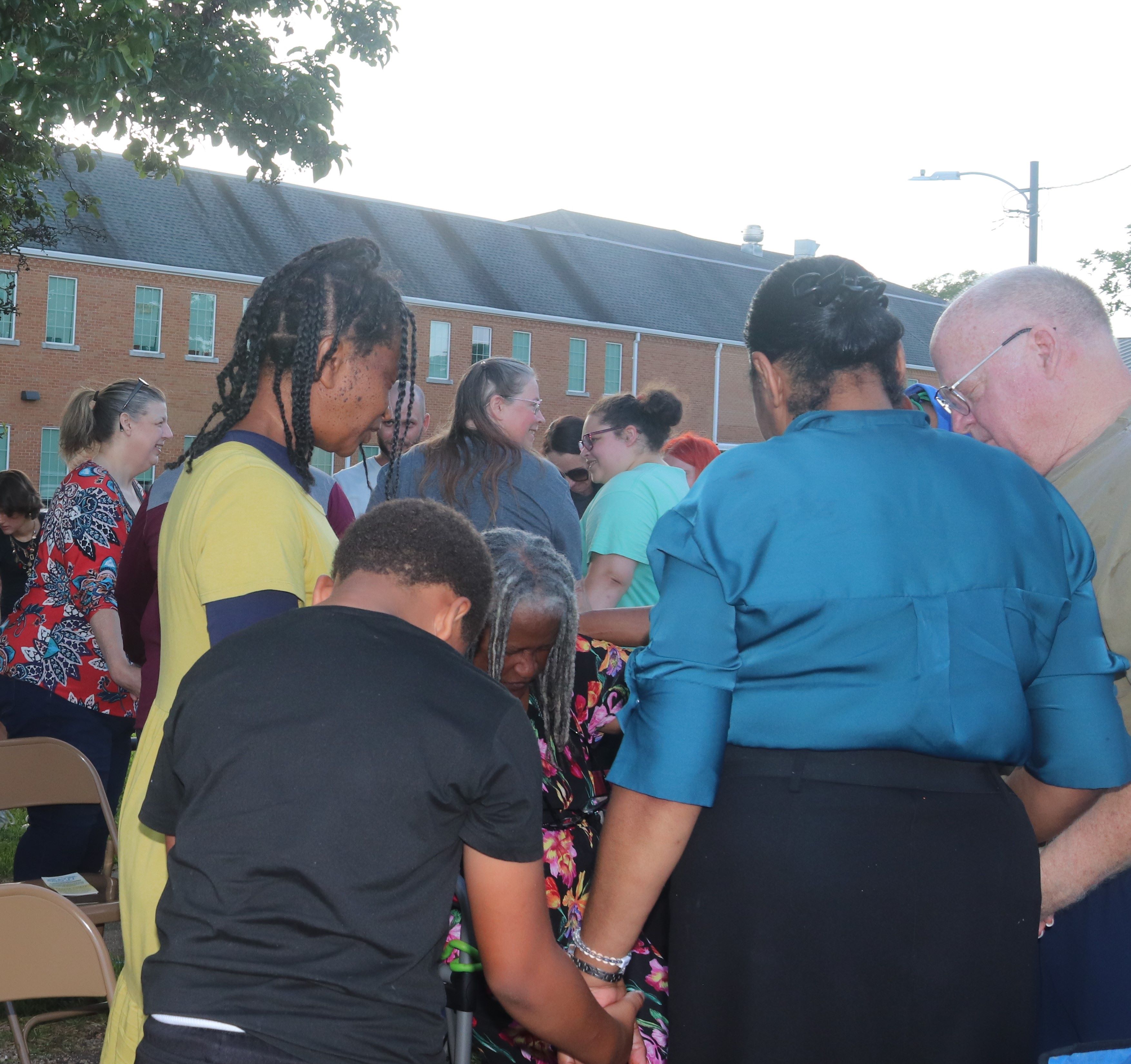 Sunny skies and warm temperatures greeted a group of nearly 100 for an evening of prayer for Magee, A City on Its Knees, June 30, 2025. It was held in the parking lot adjacent to the Community House.