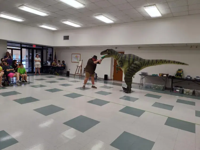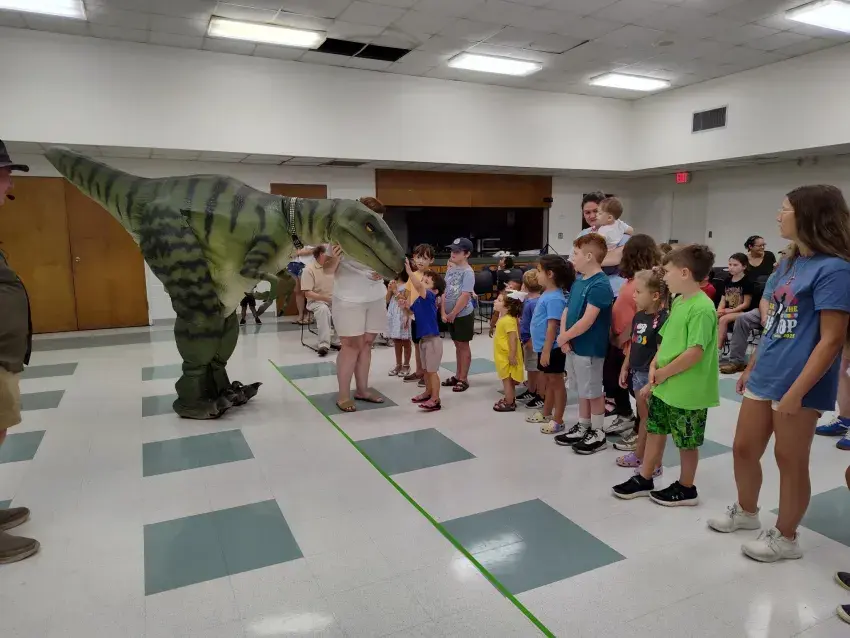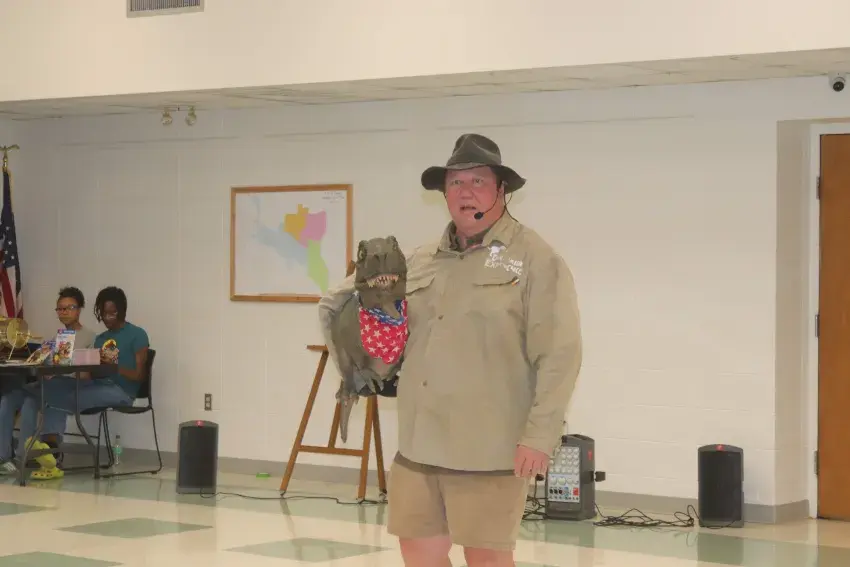 Magee Public Library wrapped up its Summer Reading Program Friday, June 27 with the Dinosaur Experience featuring Ranger Martin Wilmott, along with T Rexes, Rexxy and Fluffy. There were 82 people in attendance.