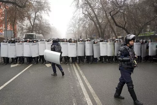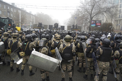 MOSCOW (AP) — Security forces in Kazakhstan killed dozens of protesters and 12 police officers died in an eruption of violence that saw demonstrators storm government buildings and set them on fire, authorities said Thursday.