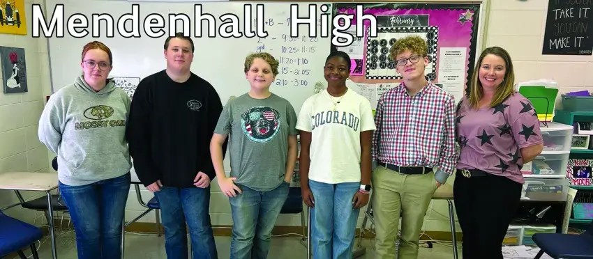 *Mendenhall High: Conner Cockrell, Logan Cockrell, Nathaniel Little, Kayli Smith, Addison Worrell, and huddle leader Mrs. Andrea Fortenberry. Absent from photo: Sadee Wallace.