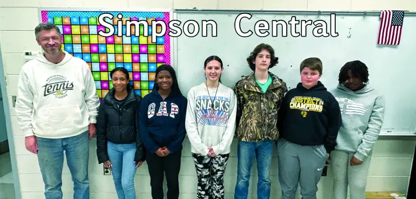 *Simpson Central School: Marlavyal Adams, Keilini Brent, Madison Bridges, Kyle Hardacre, Dusty Rawls, Gracie Snell, and huddle leader Coach Clark Walker.