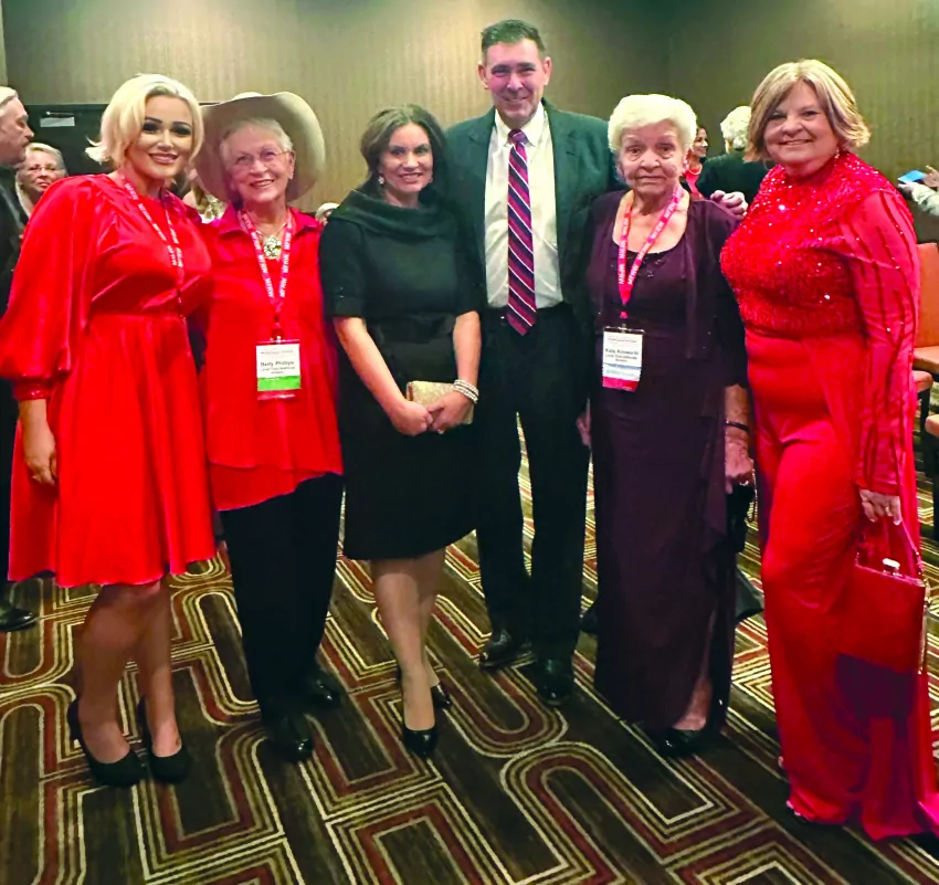 Republican Women of Simpson County members Monica Webber, Betty Phillips, Ruby Ainsworth and Lisa Givens visit with Commissioner of Agriculture and Commerce Andy Gipson and his wife Leslie at the Mississippi Federation of Republican Women President's Gala at their convention in Biloxi.
