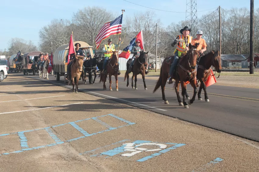 The Dixie National Wagon Train Mt. Olive Ride spent Sunday and Monday in Simpson County before pushing up Highway 49 and into Jackson. Over 200 riders participate in the event every year led by Wagon Master Tommy Sullivan. The wagon train is expected to make it to Dixie Nationals on February 9.