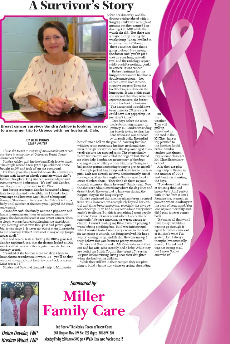 This is the second in a series of articles on breast cancer survivors in recognition of October as Breast Cancer Awareness Month.