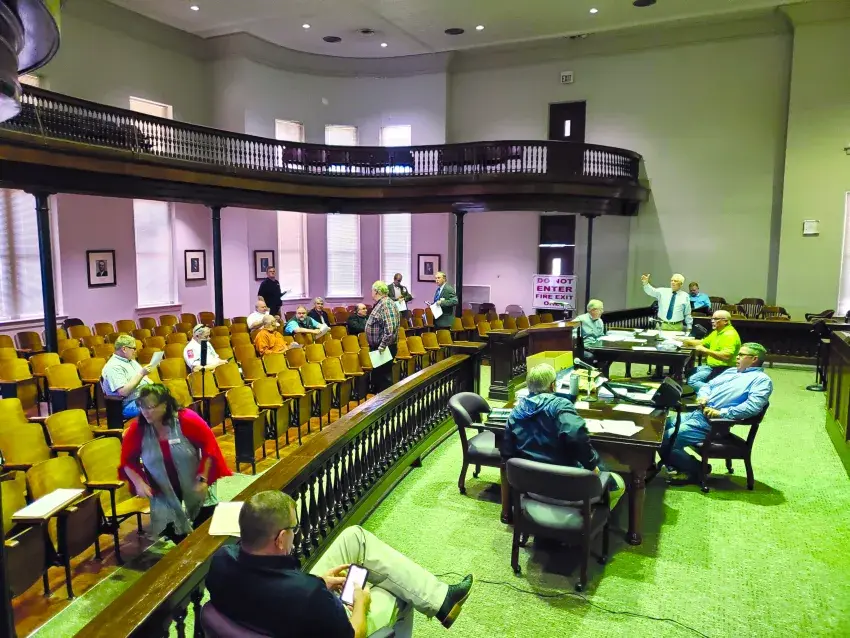 The mid-month meeting of the Simpson County Board of Supervisors was held in the circuit court room in the old courthouse rather than in the normal meeting place, the chancery court in the multi-purpose building.