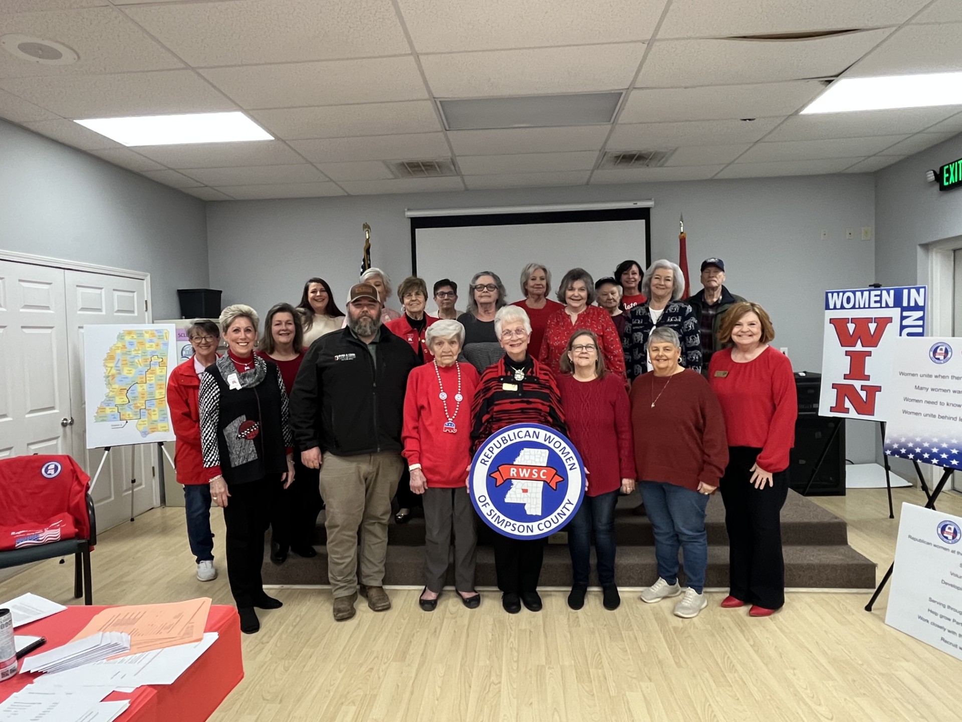 Republican Women of Simpson County held their monthly meeting on February 5 . Attending were MFRW Membership Chair Connie Davis, Juston Flanagan, Ruby Ainsworth, Betty Phillips, Jean Craft, Pat Eubanks, President Lisa Givens, Treasurer Renea Miller, Teresa Bynum, Candice Knupp, Judy Lee, Secretary Krissi Khaun, Evelyn Copeland, MFRW District Director Kathy Everett, Angela Brown, VP Judy Yates, Debra Craft, Rosemary Mooney, Karen Moseley, Janella Lee, Hames Mooney. Not pictured Chad Dixon, Sheriff Paul Mullins .