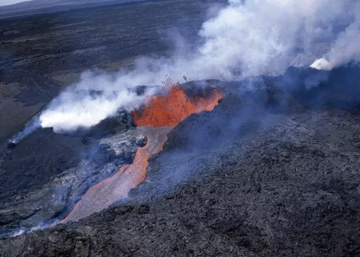Mauna Loa, rising 13,679 feet (4,169 meters) above sea level, is the much larger neighbor to Kilauea volcano, which erupted in a residential neighborhood and destroyed 700 homes in 2018. Some of its slopes are much steeper than Kilauea’s so when it erupts, its lava can flow much faster.