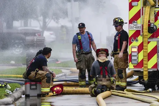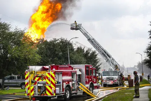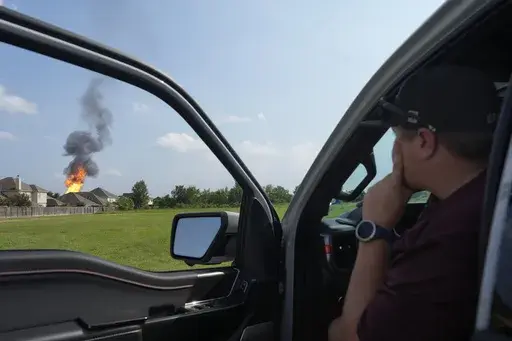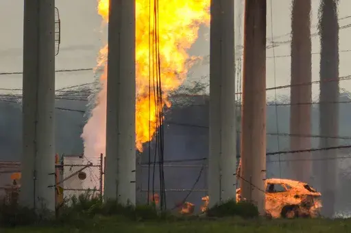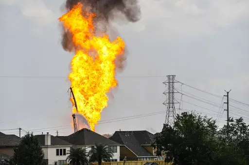 DEER PARK, Texas (AP) — A pipeline fire that erupted in a suburban Houston neighborhood burned throughout a second day and into the night Tuesday with still no definitive word on when the blaze would finally go out, when nearby residents may be able to return home or why a car drove through a fence and hit a valve before the destructive explosion.
