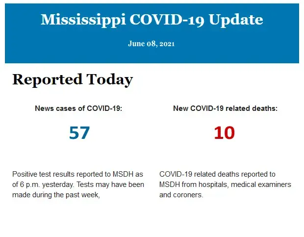 Listed below is the daily COVID-19 update for the state of Mississippi.