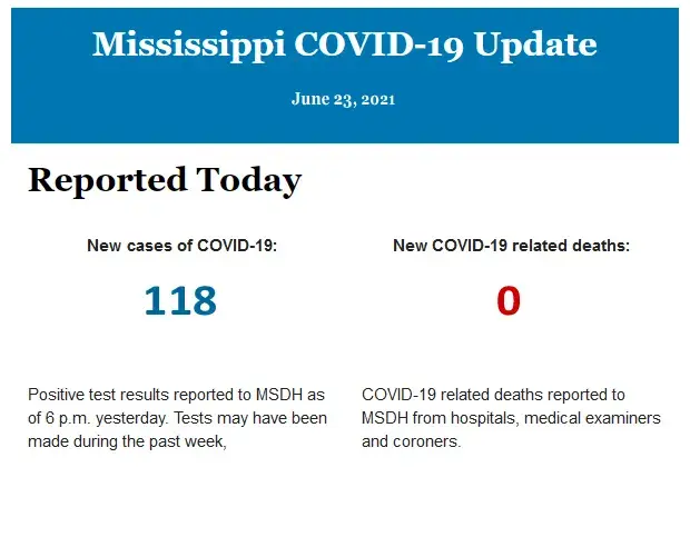 Listed below is the daily COVID-19 update for the state of Mississippi.