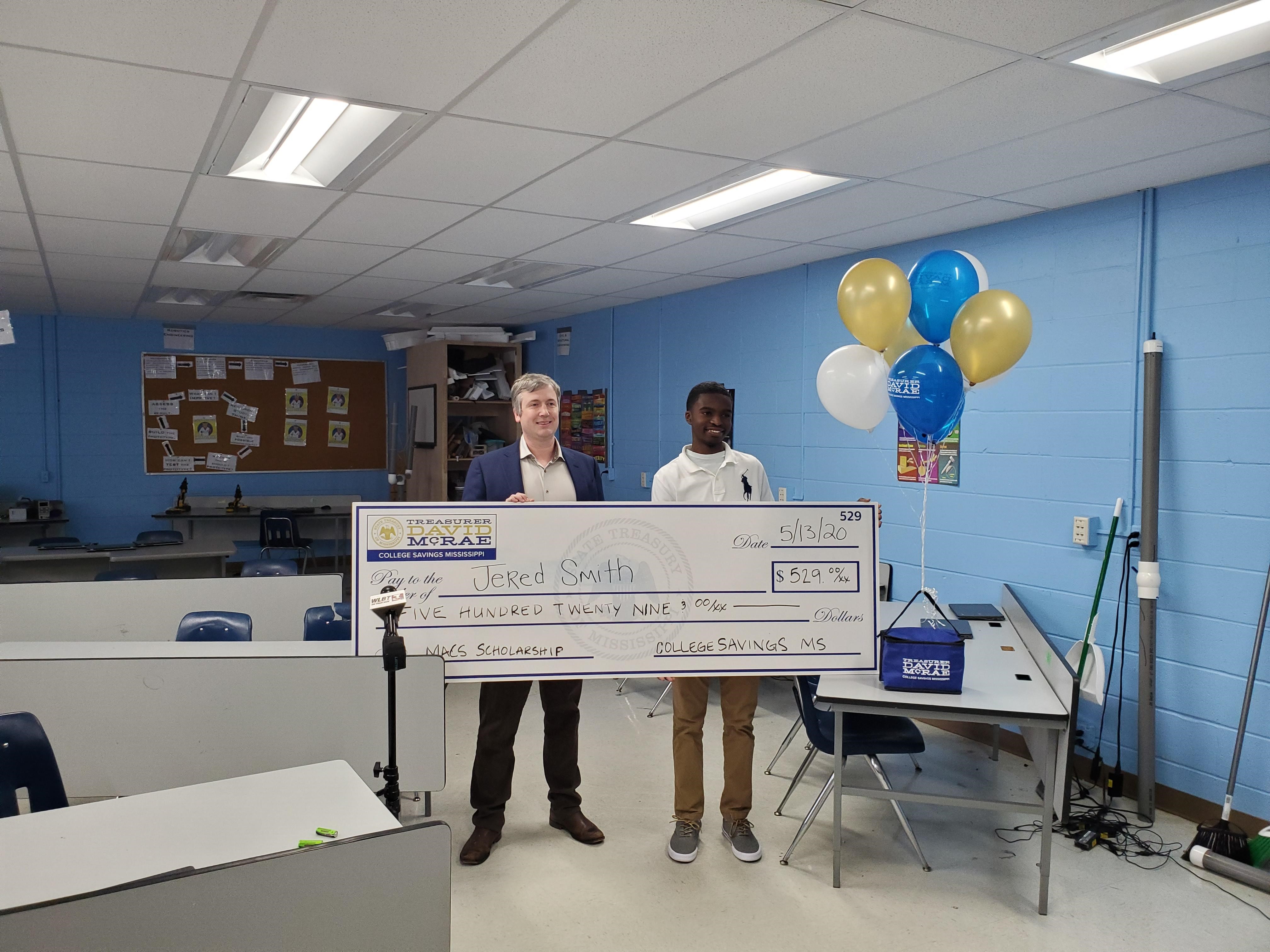 "I am extremely pleased to present Jered Smith with a scholarship from College Savings Mississippi," said McRae. "Jered has shown leadership, determination, and compassion in the founding of Season of Service, traits that will take him far in life. We're hopeful this $529 boost to his college savings will help Jered pursue a degree and a fulfilling career in the years ahead. Thank you, Jered, for doing something good for your community."