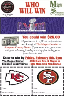 Pick the winner and be a winner! We are doing our Super Bowl contest again this year and we want to extend a special thanks to our sponsor Cattle Drive Grill & Waterin’ Hole. Here is your chance to win $25 by picking the correct winner of the Super Bowl. There are three simple steps to enter.