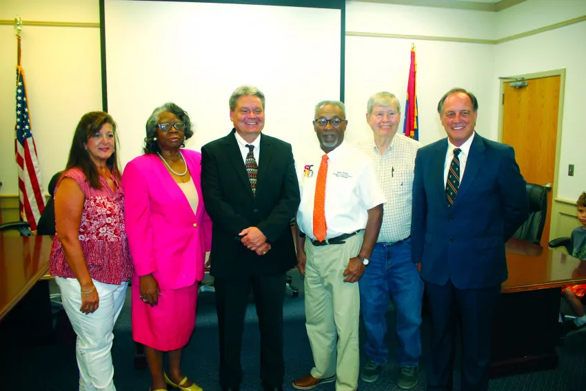 The Simpson County School Board elected new officers at their first meeting of 2024. From left, District 5 member Stacey Herrin, Vice President Lillie Hardy, Superintendent Dr. Paul Lawrence, Board President Ralph Walker, District 4 member Stan Bulger, and Board Secretary Danny Cowart.
