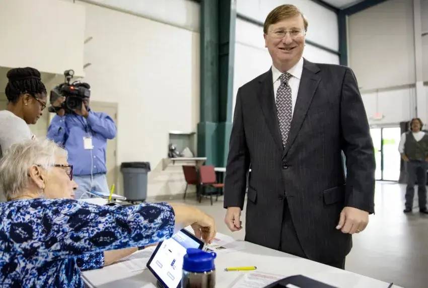 Tate Reeves prepares to vote during Election Day at Liberty Baptist Church in Flowood, Miss., Tuesday Nov. 5, 2019. Credit: Eric J. Shelton/Mississippi Today, Report For America