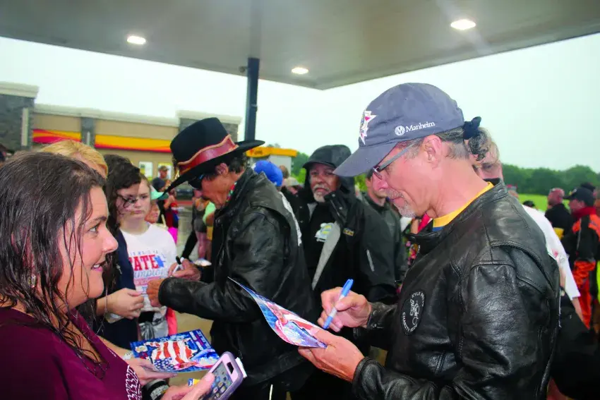 The riders and celebrities signed autographs and fellowshipped with the people of Simpson County before continuing their journey.