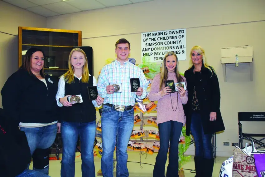 Three seniors accepted awards at the ceremony. Alexis Sullivan, Britton Holland and Ryan Welch each received a belt buckle, plaque, and $1,000 in scholarship funds. Each of the three seniors has shown livestock for the past 10 years. The Simpson County Jr. Livestock Association scholarship is one of the largest in the county.