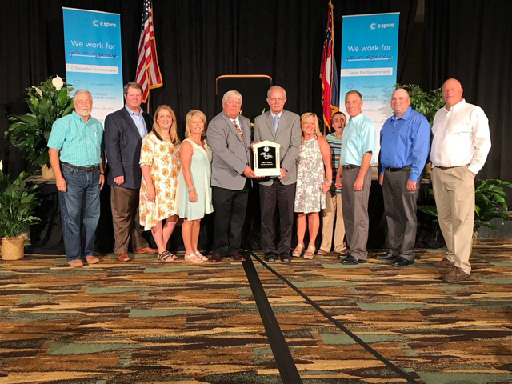 One of the last official acts for Magee’s most recent administration was an award from the Mississippi Municipal Association during their annual convention held last week on the Mississippi Gulf Coast. Included in the accomplishments was the re-surfacing of the tennis courts and walking tracks, new lighting at the McNair Springs and renovations to the Sports Complex and the new splash pad. Magee competed with cities of less than 10,000 population. Receiving the award, from left, are outgoing Mayor Jimmy Clyde, City Attorney Bruce Smith, aldermen Matthew Hickman, Ward Two, Whitney Baker, Ward One, and Patrick Brown, Ward Four, Mayor Dale Berry, Alderman At Large Angel Brister, Michael Dunn, David Dunn, Daniel Decker and Jimmy Zilla, all with Magee public works.
