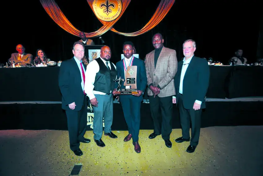 Mendenhall High School senior quarterback Christian Allen has been named Mr. Football 2018 for Class 4A. Allen was recognized at an awards ceremony and banquet held on Thursday, November 29 at the Hattiesburg Convention Center along with the five other Mr. Football honorees from across the state. The Mr. Football award is the result of a partnership between the New Orleans Saints, the Mississippi Association of Coaches and the Mississippi High School Activities Association. Each year a committee comprised of coaches and media representatives selects the winners—one from each of the MHSAA’s six classifications. At the awards ceremony, Don Hinton, Executive Director of the MHSAA, stated that when selecting the winners, the committee members look closely at the player’s stats, the impact the player had on his team and the player’s academic standing among other things.