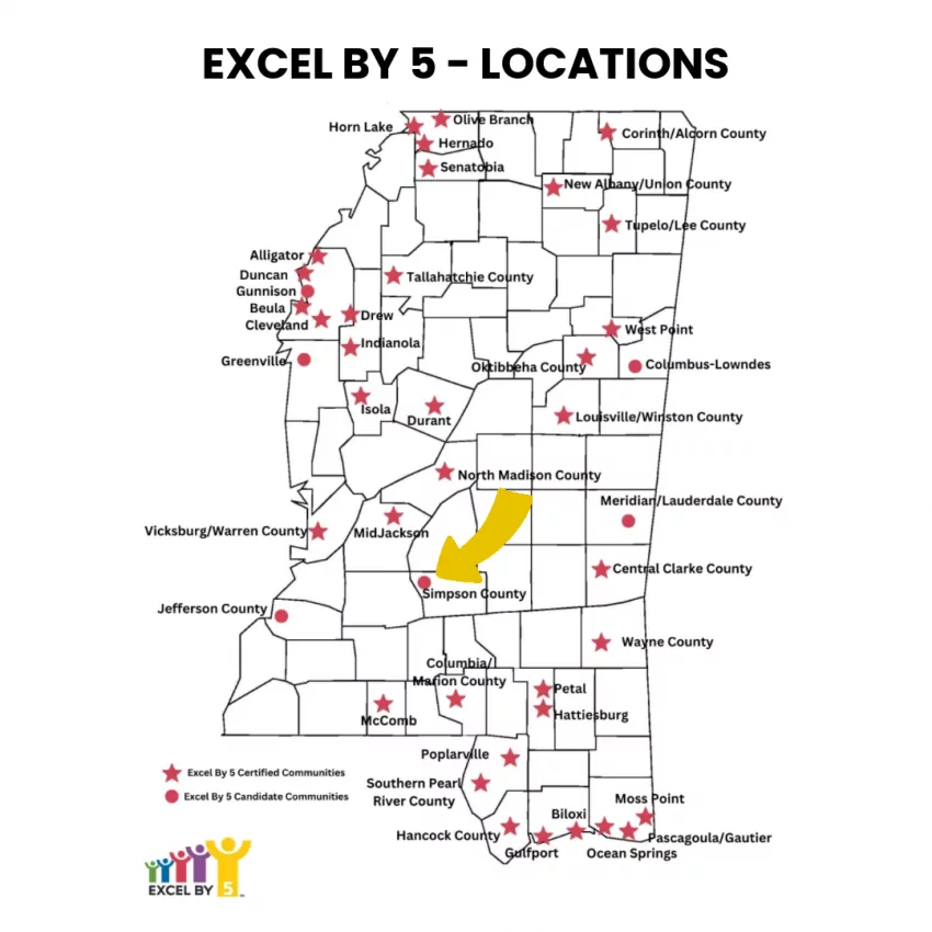 In its efforts to ensure its children are healthier and better prepared for kindergarten and beyond, Simpson County, Mississippi has earned status as an EXCEL BY 5 Candidate Community.