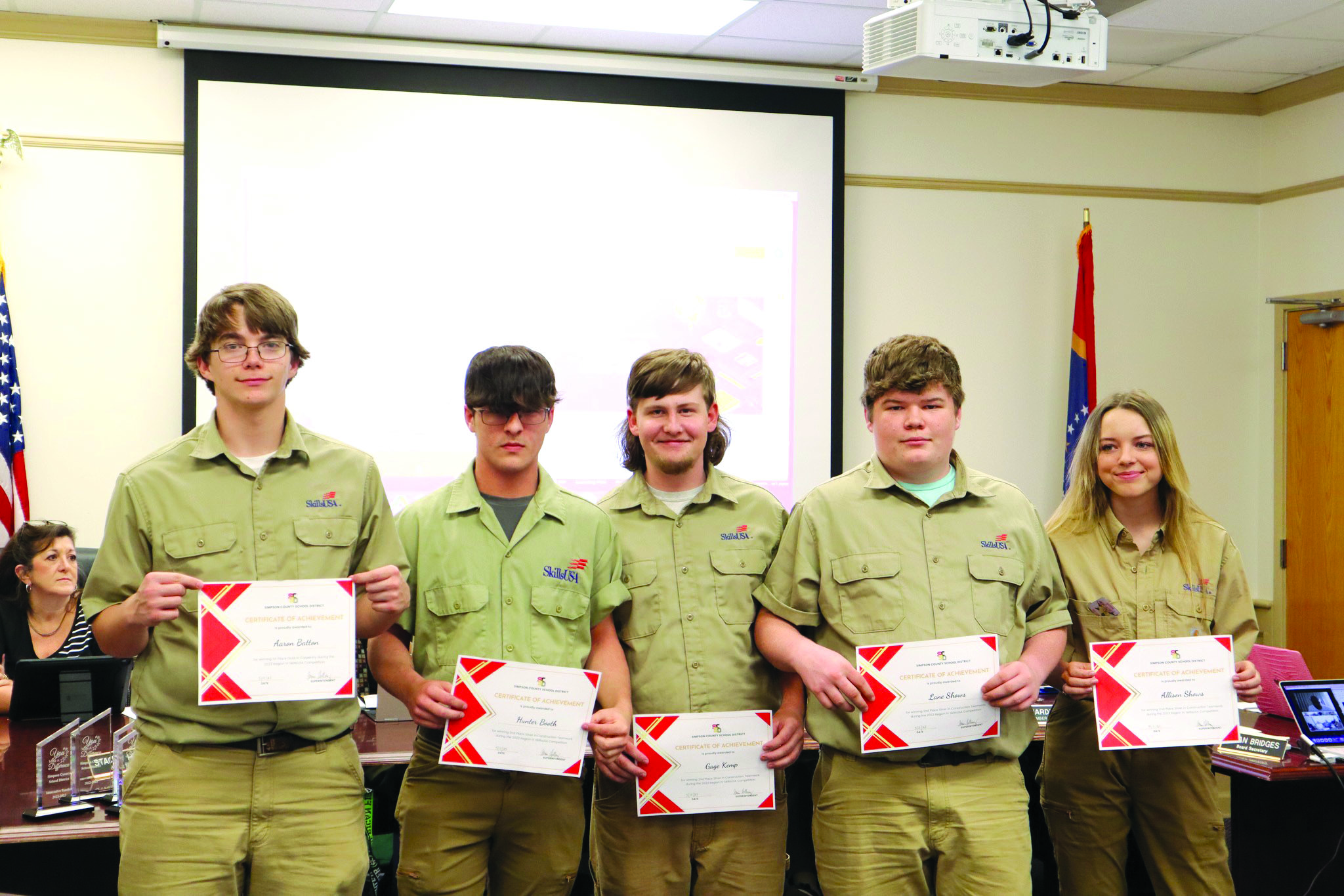 Several teachers and students from around the district were present to help celebrate student and teacher achievements. Simpson County Technical Center (SCTC) had big wins during the 2023 Mississippi SkillsUSA State Championship in Jackson. SCTC students took home three gold awards representing first place and state title; two silver awards, representing second place; and one bronze award, representing third place. Award winners included Jody Stevens, Gold Award in Sheet Metal; Eli Peacock, Gold Award in CNC Milling Specialist; Alex Anderson, Gold Award in Motorcycle Service Technology; Colby Wilmut, Silver Award in CNC Turning Specialist; John Parker, Xylan Cox and Andrew Carlisle, Silver Award in Crime Scene Investigation; Lane Shows, Allison Shows, Gage Kemp and Hunter Booth, Bronze Award in Teamworks.