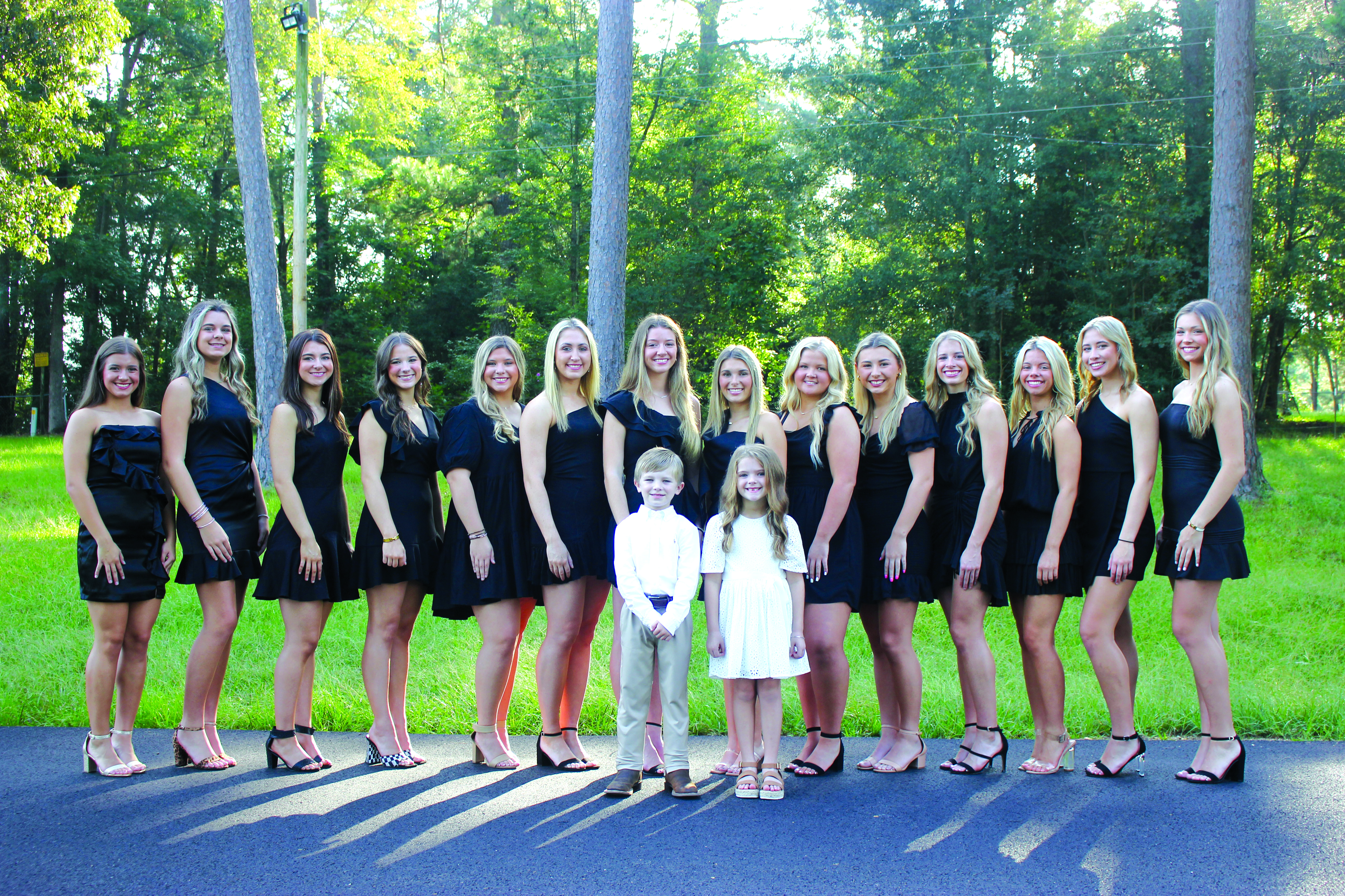 The 2022 Simpson Academy Homecoming Court, from left, Mollie Kate Garner, Lola Cook, Maylin Berry, Avery Crain, Kaci Wallace, Maddie Craft, Emma Overstreet, Mary-Madelyn Grubbs, Riley Grace Hosey, Annalea Bryant, Payton Purvis, Sydney Kate Russell, Lauren Brown, and Avery McNair. The first grade ring bearer and flower girl are Mason Williams and Harper Votaw. The Cougars’ Homecoming…