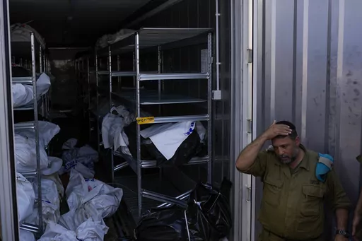 “There are still so many bodies piled. It’s endless,” said Senior Staff Sgt. Avigail, who is 48 and from Tel Aviv and once worked at the telephone company. Her team operates in shifts, four women at a time. At the end of the day, Avigail said, her team consults with psychologists and social workers to try to grapple with the horrors of the day.