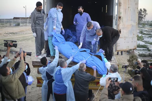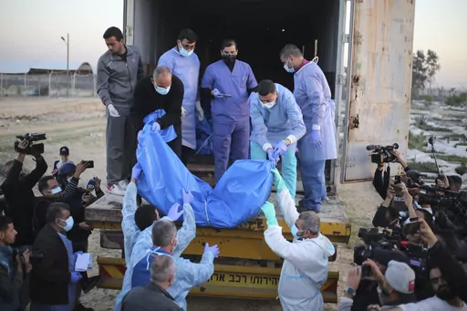 Marwen al-Hams, a Palestinian health official in Gaza, said Tuesday some of the bodies on the truck were whole, some came in pieces and many had decomposed.