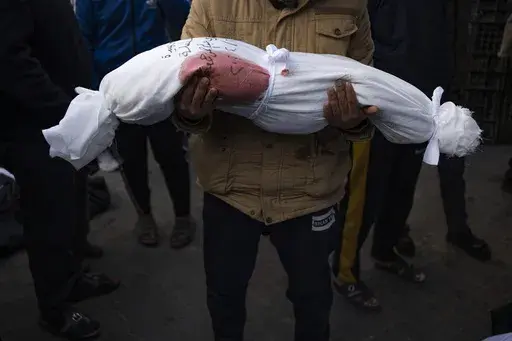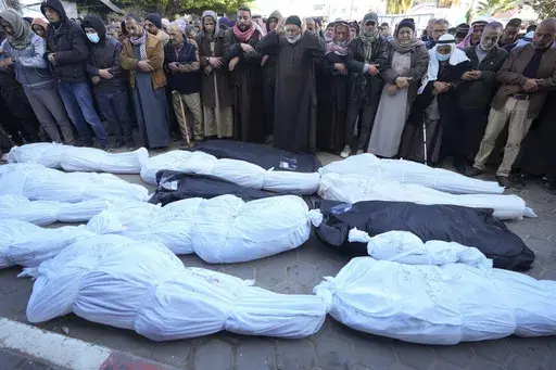The Al-Aqsa Martyrs hospital in Deir al-Balah says it received 44 bodies after multiple strikes in central Gaza. Associated Press reporters saw the bodies arriving in ambulances and private vehicles. Relatives held funeral prayers in the hospital courtyard early Wednesday.