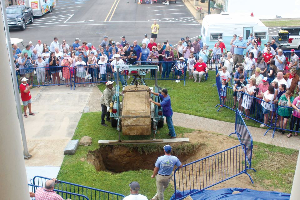 The Magee Courier/Simpson County News broadcast a live stream of the vault unearthing and opening on their Facebook page which is available to view, as well as several photos from the day’s event.