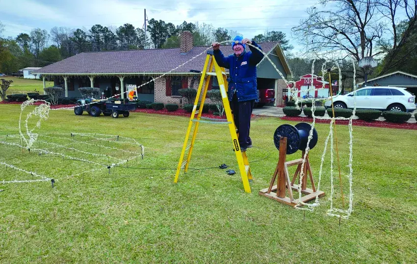 With overcast skies and chilly temperatures at the end of November, Mike Maddox of Magee put up the last of his exterior Christmas decorations and lights in preparation for the season.