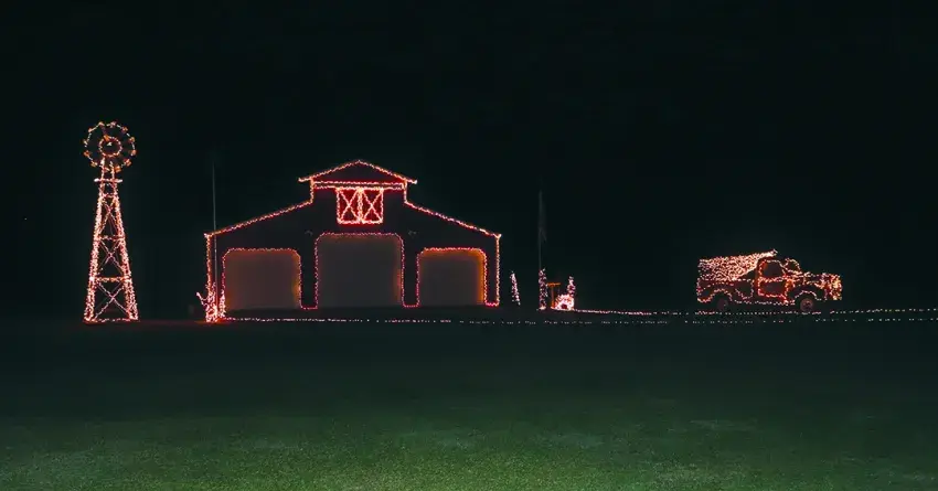In 2007/2008 Maddox had the barn put in and soon began decorating it with lights too. Then he added the windmill that he also outlines in lights. “I’ve always wanted a windmill with that barn.” He said he would do more on the back portion by the barn but that “I’ve gotten too old to do more.” It takes about 50 hours, five to six days, to complete the exterior decorations.