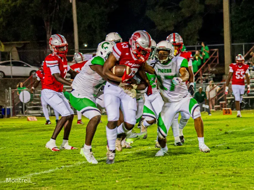The Magee Trojans flexed their strength on both sides of the ball Friday night, defeating the Collins Tigers 35-14 at Trojan Field. The win pushed Magee to 3-1 on the season while Collins slipped to 1-3.The Tigers hung close in the first half, but Magee’s ground game and defensive pressure proved too much in the second.