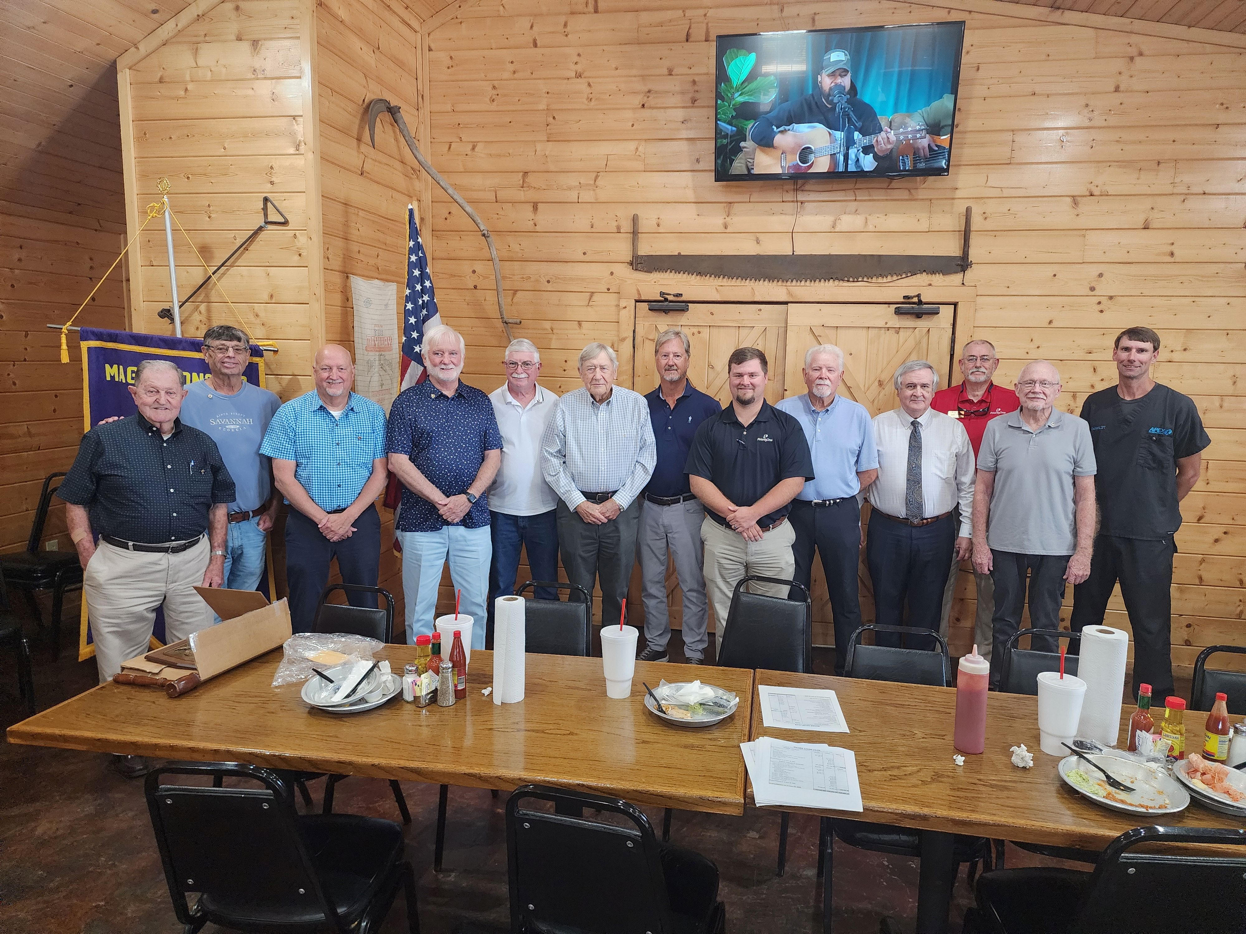 The Magee Lions Club installed new officers for the year at their July meeting. Taking over for outgoing Lion President Josh Duckworth is Lion Josh Allen, President. Serving with Lion Josh are Lions Wayne Hilton, 1st VP; BillBennett, 2nd VP; James Smith, Secretary; John Mark Williams, Treasurer; Dr. Rudy Runnels, Tail Twister; Chip Hagler, Lion Tamer; Tommy Meador, Sight Chairman; Oliver McLean, Membership Chairman; Tom Duncan, Publicity Chairman; Gerald Regal, Communications Chairman; and Directors Witt Fortenberry, Darrel Temple, Riley Runnels, C.A. Smith, B.J. Smith, and Mike Williamson.