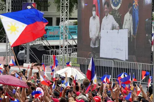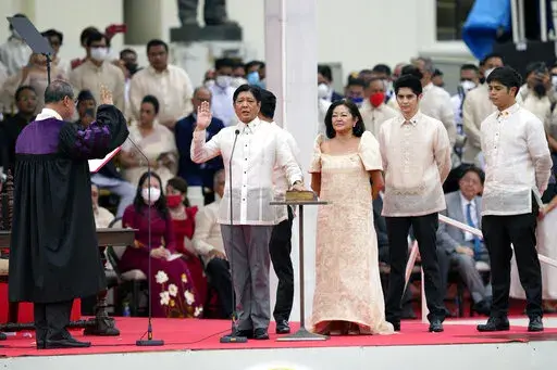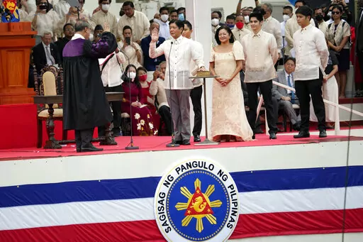 MANILA, Philippines (AP) — Ferdinand Marcos Jr., the namesake son of an ousted dictator, praised his father's legacy and glossed over its violent past as he was sworn in as Philippine president Thursday after a stunning election victory that opponents say was pulled off by whitewashing his family’s image.