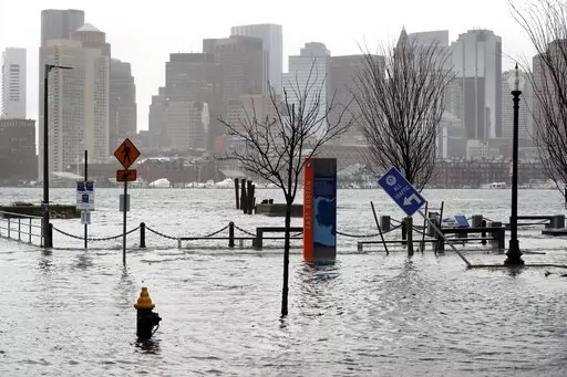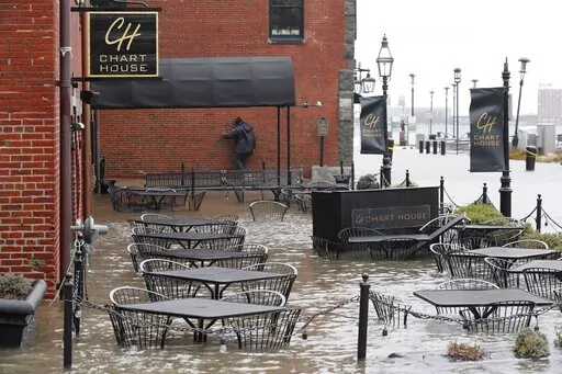 In Boston, rain combined with a high tide, sent waves over the seawall at Long Wharf and flooded some downtown streets. It was so bad in Vermont that Amtrak canceled service for the day, and nonessential state offices were closing early.