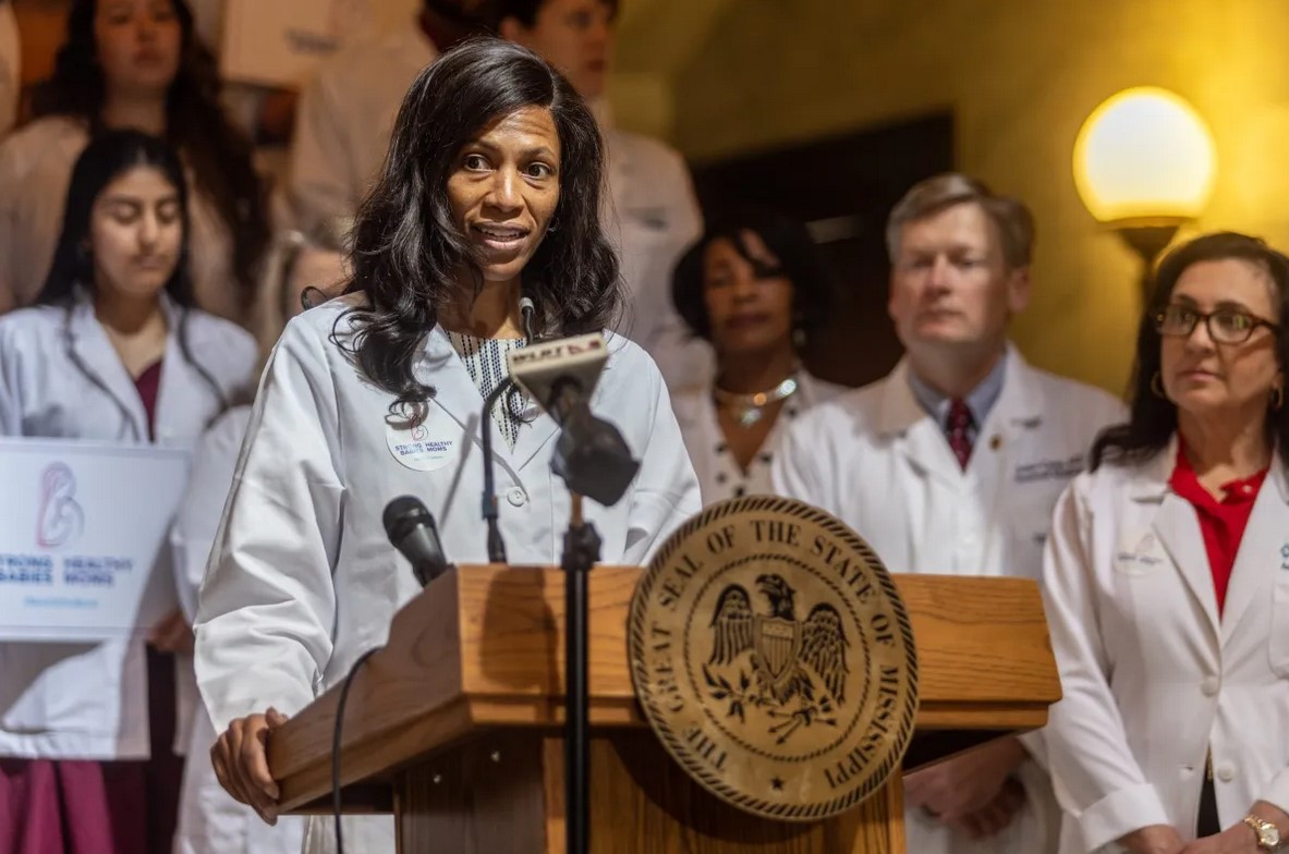 In a press conference hosted on the second floor of the Capitol, Mississippi doctors emphasized the importance of extending postpartum care in the state and at times spoke directly to the House, asking them to pass SB 2212 to extend Medicaid postpartum coverage from 60 days to 12 months.