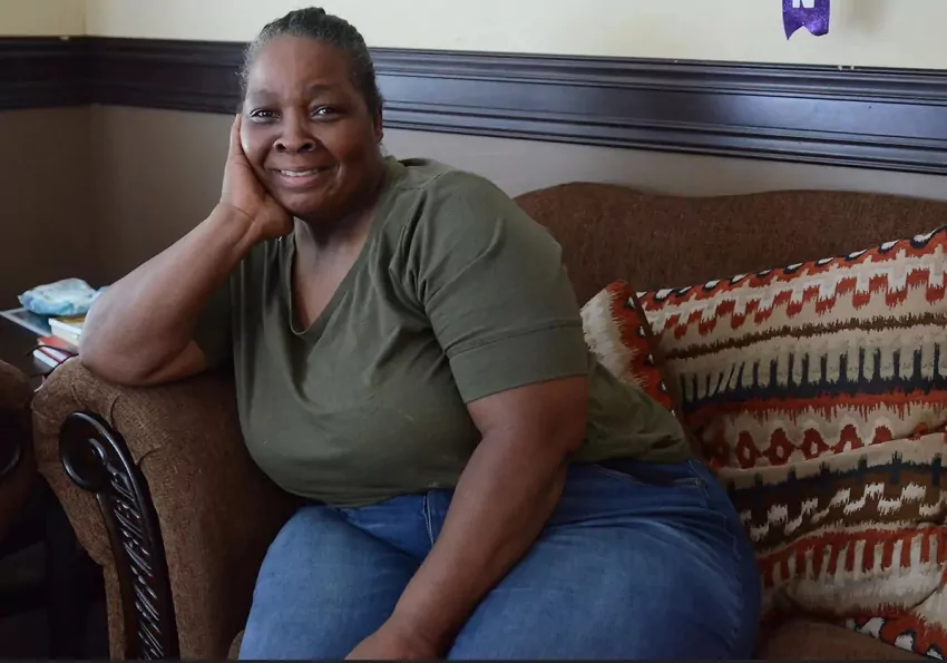Roberta Bell, 58, relaxing at her Warren County home with her grandchildren (from left), Jayden Cooper, 12, Caileb Cooper, 11, Tahari Bell, 13 and Demonie Bell, 9, Tuesday, Aug. 1, 2023. Credit: Vickie D. King/Mississippi Today