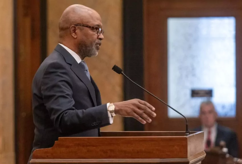Rep. Robert Johnson III, the Democratic leader of the House of Representatives, delivered a response to Gov. Tate Reeves’ annual State of the State address on Feb. 26, 2024.