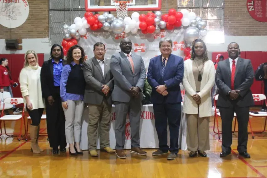 Copiah-Lincoln Community College made a special announcementWednesday, October 16, at Magee High School regarding graduating seniors. Beginning in 2025 all graduates with a 3.0 GPA are eligible for a full tuition scholarship at either Co-Lin Simpson Center or the Wesson campus. These scholarships have been made possible by an endowment left by Faye Posey a long time educator who loved her days at MHS. Posey died May 31, 2024. PIctured above left to right are Mary Catherine Franklin, Wesson Campus; Dr. Anika Floyd, Simpson Campus Vice President; Angela Furr, Wesson Campus;Senator Andy Berry; Dr. Dewayne Middleton, Co-Lin President; Dr. Paul Lawrence, Simpson County School District Superintendent, Dr. Angela Mixon; SCSD Asst. Sup. for Curriculum & Instruction; and, Mr. Duriel Banks, MHS Principal.