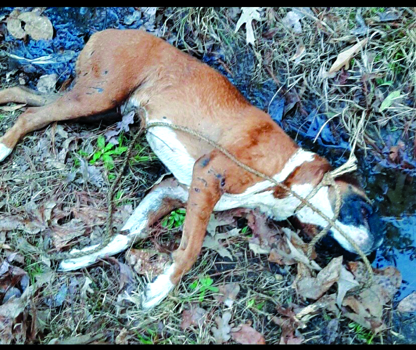 At about that time two hunters came along. Givens questioned them, and one initially claimed to have no knowledge of the dog. The other said he had seen the dog in the ditch. Givens said one of the hunters gave him a knife to cut the rope that had been tied around the dog’s neck.