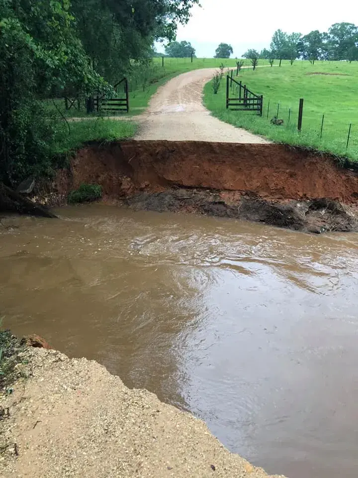 According to information reported at the board meeting, Brown had blocked the culvert with gates and hog wire, which may have played a role in the culvert blowing out and destroying the road. This impeded the flow of the stream, which recorded a 6.6 inch rainfall in a four hour period. The county road manager cited other incidents where property owners block or attempt to block county property.