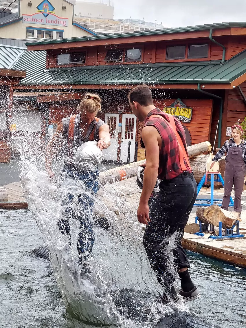 Our first port-of-call in Alaska was Ketchikan, where we had booked an excursion to see a lumber jack competition. For some reason I have always enjoyed watching participants compete in log chopping, pole climbing and other events like log rolls. They had two opposing teams, and when a team won they would get an American or a Canadian flag, based on which county the team claimed. Those fellows were talented at wielding their Stilh chainsaws or double bit axes in the throwing competition. It was a full blown show, and while tickets were about $70 each, in my book it was worth every cent.