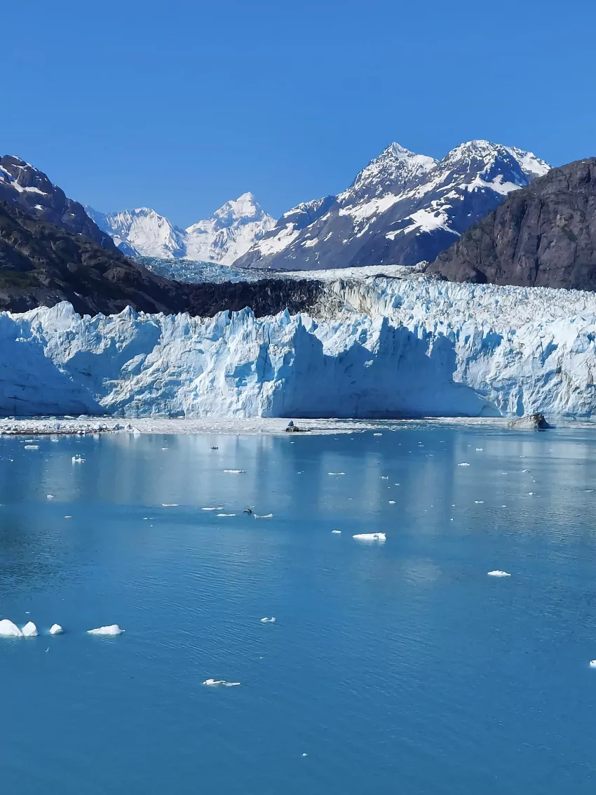When we finally made it to Glacier Bay noticable more chunks of ice were noticeable in the water. God’s handiwork is very evident when he created this part of Earth. On the ship in the channel we were surrounded by snowcapped mountains as far as the eye could see. For me it was a breathtaking experience unlike any I have ever experienced before, just having the opportunity to view the grandeur and realizing just how small you are in the big picture of things.