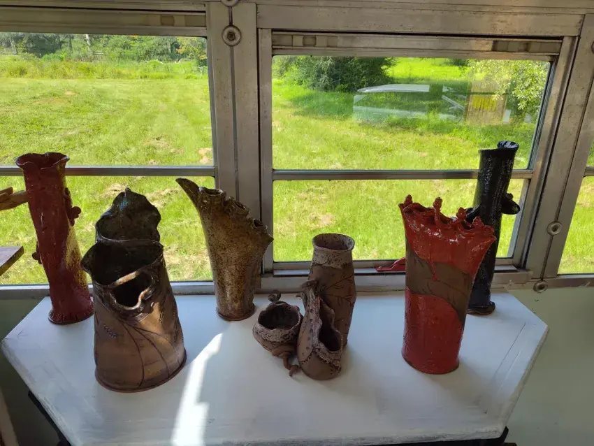Lane also has a mobile pottery barn, a former school bus painted pink. Currently she is repainting some of the flowers on the bus where she sells her pieces. In addition, Lane has pieces in Pacesetter Gallery in Flowood, and Chic Collective in Brandon. Her work can also be seen on Facebook, Pitter Potter House, LLC by Debi Lane.