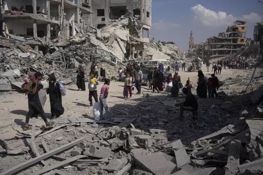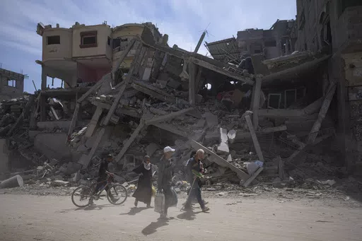 DEIR AL-BALAH, Gaza Strip (AP) — Stunned Palestinians found their home city unrecognizable Monday as they filtered in to salvage what they could from the vast destruction left by Israeli troops who withdrew from southern Gaza's Khan Younis a day earlier after months of fighting and bombardment.