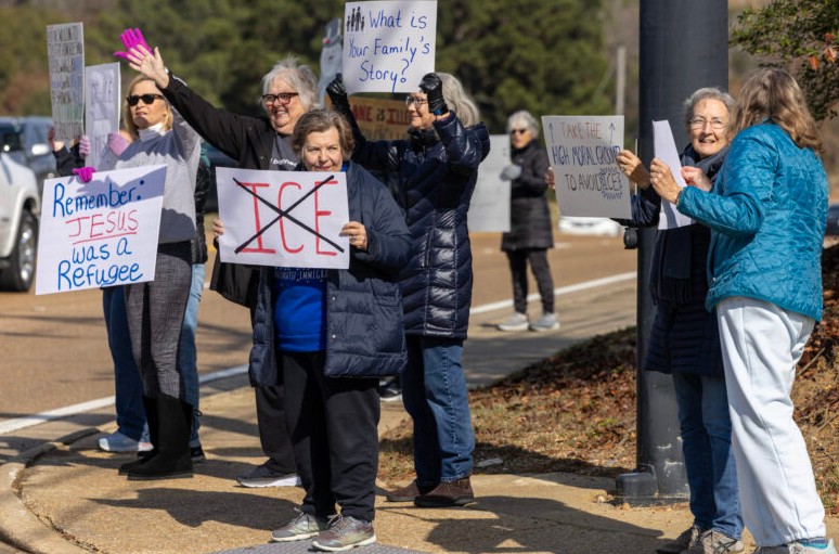A small group protested outside a monthly community meeting Wednesday in Madison to raise awareness about an immigration crackdown in Louisiana and Mississippi — a campaign known both as “Operation Swamp Sweep” and “Catahoula Crunch” – and to oppose the Mississippi government’s collaboration with Immigration and Customs Enforcement.